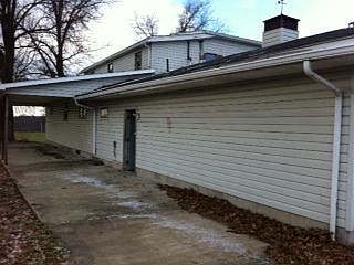 Exterior Features: Large house with a long driveway that wraps around back to an exterior garage. There is also a two car attached garage. Vinyl siding and asphalt shingles in fair condition. All windows in place and operable. Some minor gutter damage in the front. Covered front porch and partially covered back patio. Interior Features: Large and complete kitchen in good condition that opens up to a large dining room that is also in good condition. Laminate floor. No appliances. Large living room with carpet in overall fair condition. Baseboard heaters were present at one time but are now missing in many rooms. Main first floor bath is complete and is in overall good condition with a ceramic tile floor. Master bedroom/bath on first floor. Bedroom has poor carpeting and some minor damage to the walls. The bathroom is complete with ceramic tile in good condition. The second floor has a second master suite/office setup with another bathroom that is complete with ceramic tile and also in good condition. The walls of this bedroom/office are paneled and in decent condition. The carpet is poor. The second upstairs bedroom is in overall fair condition with carpet and paneling. The third upstairs bedroom is also in overall fair condition with some damage to the walls that could be caused by a roof leak. There is a newer furnace in the attic. Other mechanicals are present in the basement. The main electric panel is in the attached garage.