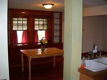 Move in ready, renovated & updated cozy 2 story home sits on wooded lot with fruit trees, lilacs & pines. First floor bedroom may be used as an office or den. First floor has had walls removed, kitchen renovated with new oak cabinets & new countertop, bathroom remodeled (both within the past year), natural wood floors. Second floor, all new carpeting & some windows. House has new electrical, plumbing, chimney and new doors. Large deck is shaded by pines & wisteria; back yard backs to woods. Possible investment opportunity!