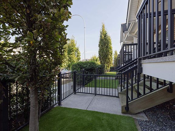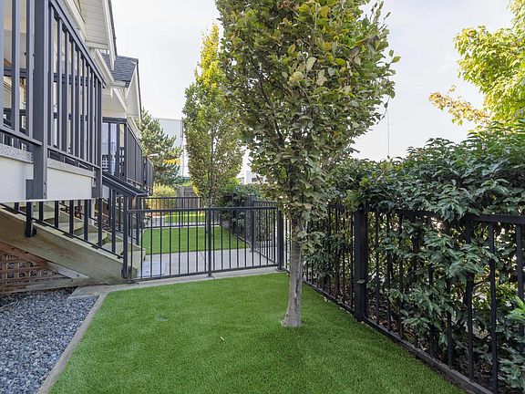 Low-maintenance artificial turfSpacious covered patioSmart mysa thermal controlsSmart doorbells and chimeSmart security system
