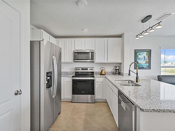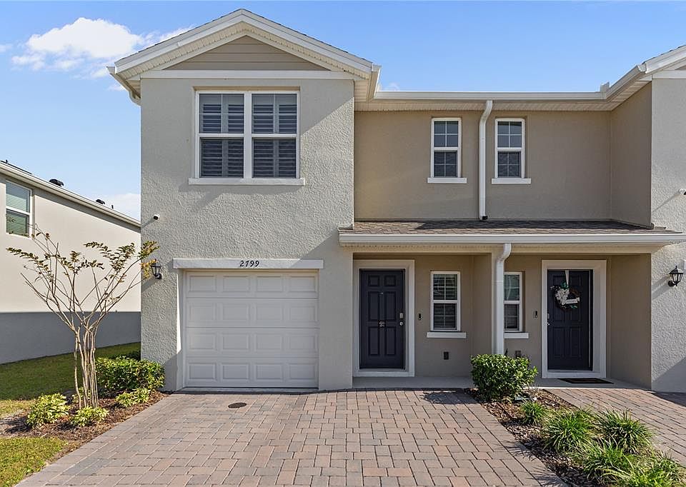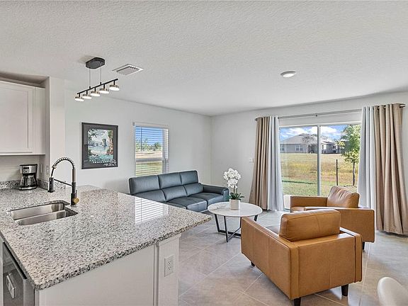Welcome to this beautifully appointed end-unit townhome constructed with concrete block on both levels. Located in the vibrant Harmony West community by D.R. Horton, you will discover the highly desired “Pearson” model featuring 3 bedrooms, 2.5 baths and approximately 1,463 sq ft of modern living space. The first floor offers an open-concept layout with a stylish kitchen showcasing stainless-steel appliances, new upgraded kitchen faucet, bar-top island seating, a spacious dining area highlighted by a new dining room light fixture, and a comfortable living room that opens to a rear concrete pad—perfect for grilling or outdoor relaxation. This home also features a number of valuable owner upgrades including plantation shutters, ADT security cameras, a home surge protector, water filtration system, and an upgraded kitchen light fixture. Upstairs, you’ll find a generous primary suite with walk-in closet and dual-sink ensuite bath, two additional bedrooms, a full guest bath, and a convenient laundry room equipped with a washer and dryer. Adding privacy and value, this is an end unit with a one-car garage, and it is being offered fully furnished with modern contemporary furniture, making it ideal as a turnkey vacation home, winter retreat, or effortless investment property. Located within the master-planned Harmony West community, residents enjoy resort-style amenities including a beautiful clubhouse, resort-style pool with sun shelf, splash pad, fitness center, playground, dog park, and scenic walking/biking trails woven throughout a lush preserve-inspired setting. The community is conveniently positioned for easy access to Lake Nona, Medical City, major commuter routes, and a straight drive east to Florida’s beautiful Atlantic beaches. With smart-home features, owner-added upgrades, block construction on both levels, and a move-in-ready furnished interior, this home offers the perfect blend of comfort, convenience, and true Florida lifestyle living.