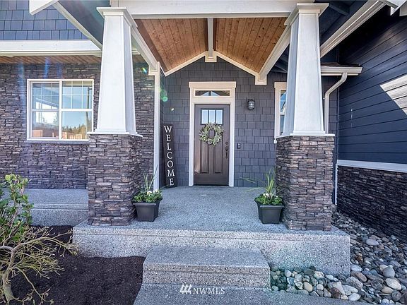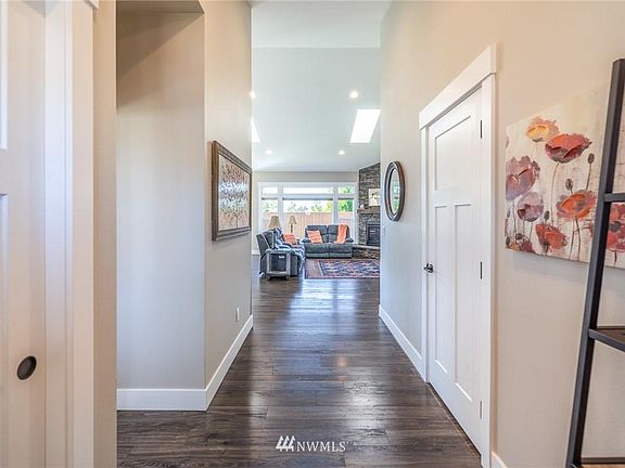 On the very edge of Ferndale city limits on a quiet cul-de-sac, this elegant 2018 home on one of the larger lots in The Meadows, is absolutely teeming with upgrades. 4 bedroom, 3 bath open floor plan home with vaulted ceilings, skylights, A/C and beautiful large windows letting in gorgeous natural light year round. Large glass sliders lead to the fully fenced back yard with beautiful landscaping, irrigation, patio, covered deck, AND wired for a hot tub! Enjoy a chefs kitchen with quartz countertops, large island, 5 burner gas cooktop, double oven, large pantry, and GE Cafe black stainless appliances. Master on main with delightful walk out porch, en suite with double vanity, large walk-in tiled master shower and spacious walk-in closet.