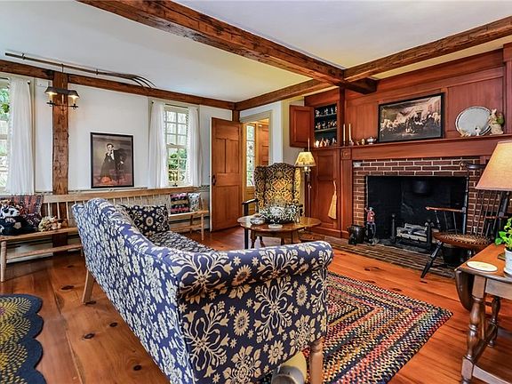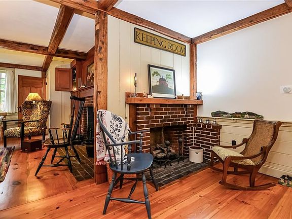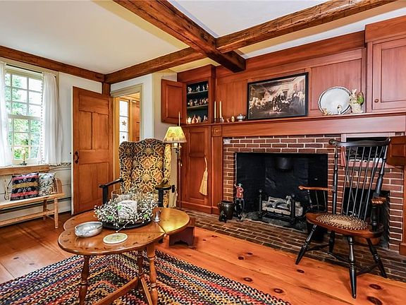 This house was built before the United States was founded! However, the builders would not recognize it today!It looks the same on the outside except for the beautiful deck, but the heating ,the electricity ,the new 9 over 9 insulated windows, the new bathrooms, gas in 2 of the three fireplaces ,and the Kennebec kitchen would astound the settlers. This house is an exciting example of the charm of the antique and the ease of living in the 21 Century. The spacious,30's two story barn has as many uses as you could think of , and the shed from 2013 is a handy addition.There is even a working well which could be used for sprinklers if desired.Also,very sought after, is the first floor fireplaced master bed and bath which includes an air jet tub,custom glass shower stall and modern fixtures!This house must be seen because there are so many other wonderful features.Historically,2799 Mendon Road is named the Angell-Carpenter House.The owners took the interior of the house back to the studs,changed some openings creating a large dining room with a wall of windows looking out at the expansive green space and lovely barn. .Located 15 miles north of providence and 32 miles from Boston makes for an easy trip either way. Come and see the "Good Morning"staircase landing and the surprisingly high ceilings!