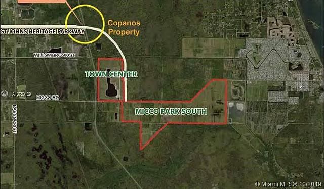 Two parcels 1) 760 acres vacant pasture land 2) active tree farm Free of environmental issues. City of Palm Bay adopted amendment to the Future Land Use for the Micco Park District. Mixed Use 2,691 dwelling units on 1,035 acres, 213,383 square feet of non-residential development. New DOT Interchange at I-95 and St. Johns Heritage Parkway exit WITH TERMINUS ADJACENT TO PARCEL. See attached Interchange information. Soil Test Borings reveal 20" layer of Very Good Medium Sand.