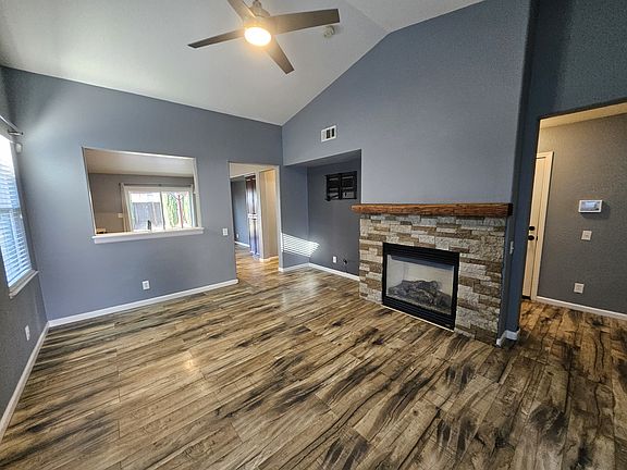 This beautiful home features a 3 bedroom 2 full bath on a quiet street. Custom paint and Laminate wood flooring throughout and carpet in the bedrooms. Ceiling fans are located in the Family Room and all bedrooms. The kitchen features granite countertops, stainless steel appliances including a microwave and dishwasher. Master bedroom with a walk-in closet. Laundry room in the garage containing washer and dryer, Low maintenance finished backyard with artificial turf, patio and gazebo great for entertaining. Paved side yard for RV access and storage shed. Home also comes with SOLAR so very limited utility bill. The two-car garage is finished with auto opener and shelving. The Laundry room is located in a finished 2 car garage with an auto opener. Central HVAC.
