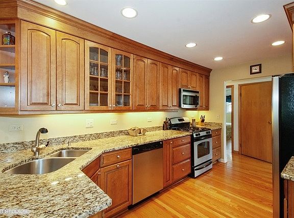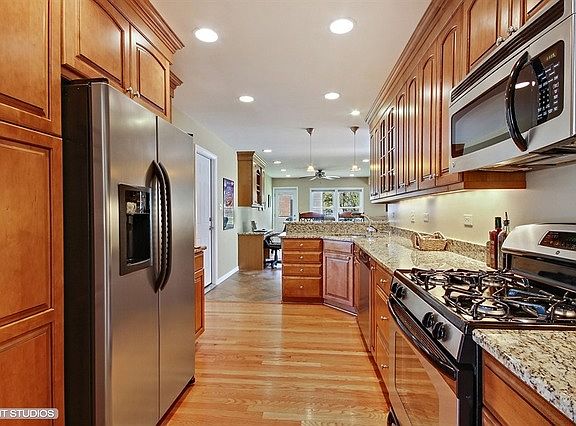 Meticulously Maintained Brick Ranch Home! Hardwood Floors in All Bedrooms, LR,DR & Kitchen! Recessed Lighting Throughout Home!Open Galley Kitchen w/Granite, SS Appliances, Lots of Cabinets, Separate Breakfast Area leading into Family Room w/Fireplace.All Bathrooms Updated w/Granite & Ceramic Tile! Master Bedroom w/Updated Shower. Partially Finished Basement Great for Office! Large Backyard w/Huge Stone Patio!