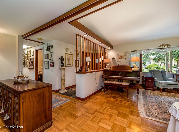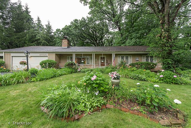 A sprawling ranch on a picturesque property! This lovingly cared for home boasts 4 bedrooms, 2 full baths and a finished basement. Your front porch awaits you and offers views of the gardens. Step into inviting foyer with slate floors and imagine endless possibilities! Open concept from family room to dining room and kitchen. Vaulted ceilings, hardwood floors and an impressive fireplace instantly welcome. Off the kitchen is a great covered sun room w/access to outdoor deck and your private garden oasis. Finished basement w/bedroom, entertainment area and great laundry room. 2 car garage w/extra storage. Close to train, expressways, entertainment and more!