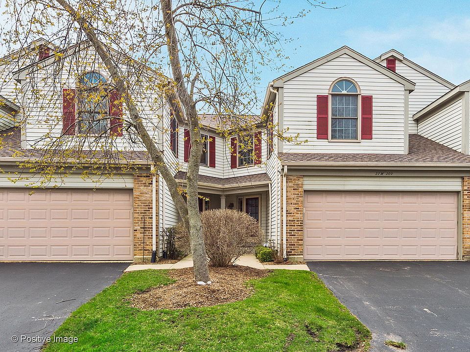 TERRIFIC 2-STORY 2-BEDROOM TOWNHOME! GREAT LOCATION! An open main level offers entertaining space in the sunlit 2-story living room with appointed fireplace sliding glass door to deck. The dining room opens to the living room and kitchen great flow for mingling among guests. The spacious kitchen has loads of storage and prep area. Sip your morning coffee or have dinner under the stars on your south facing deck. The second level features two generous bedrooms including the master with shared bath. The loft can serve as a home office or reading nook. The 2-car attached garage has epoxy coated floor and locking tool / storage lockers. On quiet cul-de-sac located minutes to the train, major roadways, Starbucks, shopping, Cantigny, Forest Preserves and CDH! You must see this charmer to appreciate all that it offers.