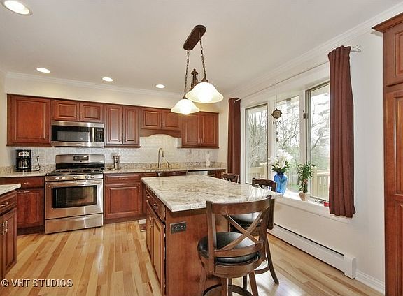 Central Air just installed in this bright & cheerful updated raised ranch. Walk to train, town, parks Kitchen w SS/app & bow window overlooks large yard. Cherry eat-in kitchen opens to dining rm w/sliders to deck. Lrg fam. rm in wlkout lower level w/FP, bed & bath. Perfect for teen, guest or in-law. NEW ext & inter. doors and Crown molding throughout. NEW H2O heat, carpet, washer/dryer. Beautiful house Bring an offer