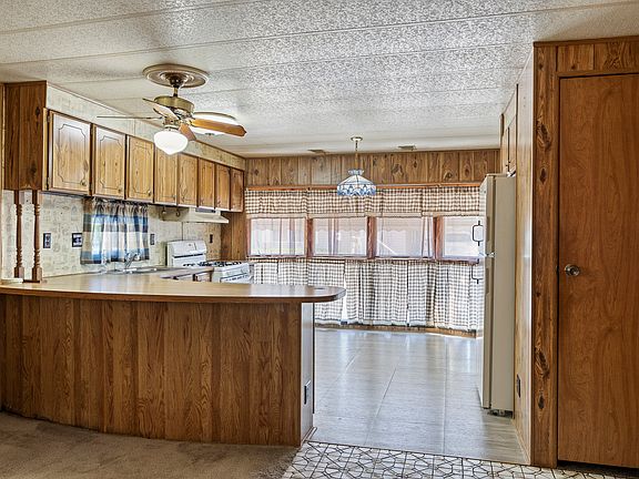 Spacious eat-in kitchenNew furnace and acBay windowCovered side patioNew refrigeratorNew dryerNew roof