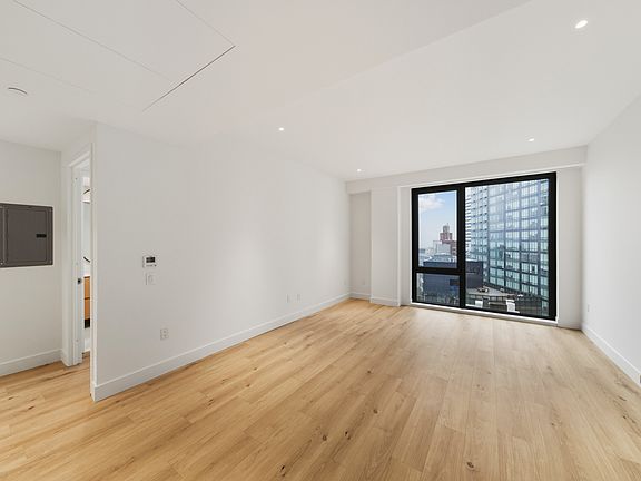 As part of the ICross LIC community, residents enjoy a curated selection of amenities including a state-of-the-art fitness center, a stylish residents' lounge, bike storage, a two-level sun deck, and a rooftop terrace offering sweeping views of the Manhattan skyline. The building also features the ButterflyMX virtual doorman system for added convenience and security.