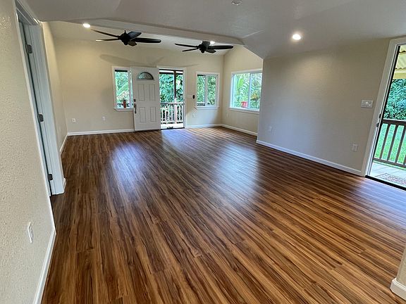 Renovated home available in Honomu on a lot with exceptionally low EMF, Electro Magnetic Field. Tenants are urged to skip the Wi-Fi and connect to the Internet via ethernet to maintain the respite from EMF. Two bedrooms and one bathroom on the makai side of the house, with an expansive living area and an outstanding kitchen. High end finishes and great views, this property is available for long term occupancy (six month minimum). Tenant pays electric. Propane, water, ethernet and lawn service included in rent. No pets. Complete an application at hbr dot managebuilding dot com prior to requesting a showing.