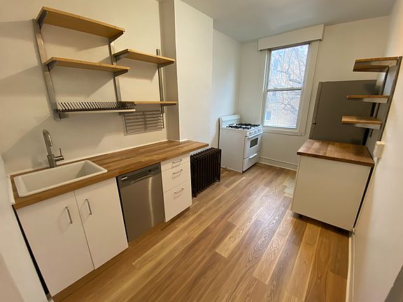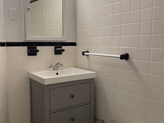 Renovated bathroomBright vanity lightLarge second floor apartmentFull tubTree-lined residential blockGreat windows or skylightsNew cabinets