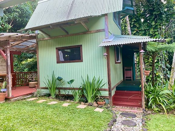 Historic heritage coastal town of Honomu. Super cute remodeled, fully furnished ohana (guest house) with lanai (deck), new kitchenette, good sized fridge and awesome loft bedroom with peekaboo ocean views. The private bathroom and shared laundry room are on the ground floor of the main house a stones throw away from the cottage. Big private yard with avos, pineapple, mangos, kau oranges, lilikoi and lots of room to plant. Enjoy Honomu's cute cafes, zip lining and bakery, all a block away on the historic main street. 11 miles to Hilo, 8 miles to surfing, 3 miles to Akaka Falls. Live among the swaying coconut palms in a tropical garden of your dreams! Rent of $1500 covers utilites and wifi! Small pet considered. Owner pays for all utils except trash which tenant takes to nearby transfer station. There is no trash service on the big island. No Smoking on property. Respect the peaceful surroundings.