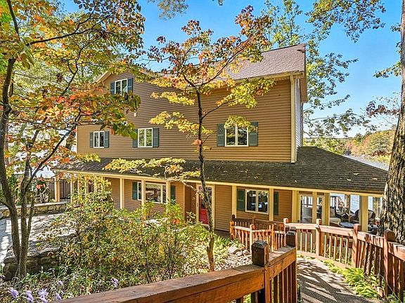 A true waterfront retreat w SUNSET VIEWS FROM EVERY ROOM, plus a private guest house! A 2-family option! Why go to the cape when you can vacation at home each day? Come experience fully recreational, 215-acre Lake Maspenock! Dock your boat right up to cantilevered deck & enjoy al fresco dining on the water. White kitchen opens to one-of-a-kind stone patio w fireplace/pizza oven. Cozy family room w wood-burning stove, dining room w Brazilian Cherry floors & 3-season sunroom. Upstairs, a vaulted great room w stunning two-story wall of windows, a serene primary suite w private balcony, walk-in closet & updated bath await. Two more bedrooms, an office, & 2nd renovated bath complete the main home. Detached 2-bed, 1-bath guest house offers full kitchen, family room, laundry, water views - a great rental! Private boat launch! Home NOT in flood zone as dam controlled. Beach & neighborhood gatherings. Top-rated schools, close to 495/90, commuter rail. Live like you are on vacation each day!