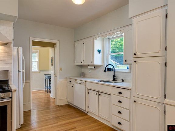 Instant curb appeal and historic charm a plenty in this classic Victorian brick beauty, which sits up proudly on the corner hill of 4th Ave just waiting for its new owners to enjoy the tasteful landscaping and large front porch and swing. Combined with its elegance, the home already has a newer furnace and central air, as well as newer windows, 2 year old roof, and a large detached 24x24 garage - taking up the slack in covering those big ticket items and convenience where other homes are lacking. Inside you'll love the wide open floorplan, tall ceilings and detailed woodwork, stately wood burning fireplace with vintage mirror, beautifully refinished hardwood floors, upgraded appliances, subway tile backsplash, mud room leading to a main floor 1/2 bath, and stunning sun room looking out to the fenced yard. Upstairs you'll find 4 large bedrooms, each with its own spacious closet, and one that even has its own walk out porch overlooking the fenced in private concrete patio below. A nicely updated full bath, complete with a big jetted tub/shower combo accompanies the bedrooms upstairs. Another living room awaits downstairs with its own wood burning fireplace, as does plenty of storage and the laundry to finish off the space. This is a home you don't want to miss out on, so schedule your private tour today!