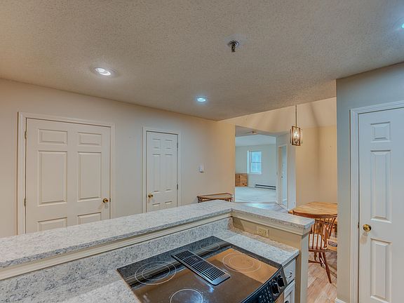 Exit I-93 into Franconia, you’ll sense a slower pace and admire Franconia Notch as it sits boldly to the South looking over the Village and The Dow where people gather for community events. Imagine turn key ease for skiing, hiking & breathing the fresh mountain air! Simply making time in your life to take care of feeding your soul! You’ll arrive back to work on Monday refreshed & eager for work week knowing that in a few days you’ll repeat it all over again. The Dow, built in 1903, originally served as Franconia's high school until 1958. Between 1963 & 1977 Dow Academy was part of Franconia College, lower campus to that in Forest Hills. Here it housed faculty for the various depts. of college, the sign on each door denotes its past dept. Franconia College was known for its progressive, alternative higher education. Building has been listed in the National Register of Historic Places & converted into condos & townhomes totaling 16 units. Occupied by both primary & vacation home owners-all share the care free and ease of living here, Village living, outdoor recreation that surrounds them including easy access to trails, river, brewery, library, hardware store, ice cream. A 2nd floor unit, 2 bedroom, 1 3/4 bath. Tall coffered ceiling makes for a feeling of larger space with oversized windows allowing for great daylight. Common Laundry and this unit also has a carport for several more years, they are issued by lottery. Addtl.storage unit approx. 6 x 10 behind carport building.
