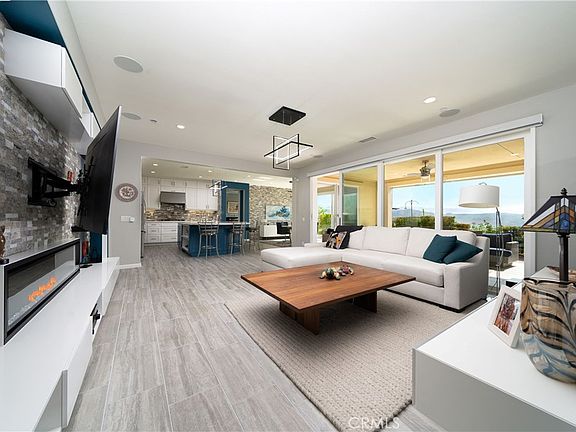 Welcome to one of the most breathtaking views in all of Esencia’s 55 & better Gavilan communities in the desirable neighborhood of Cortesa by Shea Homes. Be captivated by unobscured panoramic mountain views that will dazzle you from almost every room! Enter through the custom stained-glass front door to discover an oasis that brings the tranquility of the outdoors to the interior in a myriad of ways including 3 gorgeous outdoorsy floor-to-ceiling wall renderings hand-painted and signed by a local artist. The single-level design offers dual primary bedrooms & 1/2 bath adjacent to the bonus room (easily a 3rd bedroom). Experience the epitome of indoor-outdoor living w/ 3 expansive slide-away glass doors leading to a spacious California Room w/ remote-controlled shades, complete w/ a glass-rock fireplace. A built-in media center in the great room sets the stage for cozy nights in front of the glass-rock fireplace. The kitchen boasts quartz counters, new refrigerator w/ glass display window, natural stone backsplash, walk-in pantry, & an oversized ocean-colored island. Wake up to gorgeous views from the primary bedroom where nature’s beauty becomes part of your daily routine. Ride the wave of the primary ensuite’s shower door glass beach wave design, customized to feel as though you’re in a vacation beach home. Secondary ensuite bedroom offers a walk-in closet & large tub w/ shower. From the backyard space, soak in the sweeping “oh my gosh” views from the comfort of your private above-ground spa amidst nature’s golden sunset splendor. This residence is equipped w/ modern chandeliers, paid-off solar panels, LED lighting, smart thermostat, purified drinking water, black-out window coverings in the primary bedroom, fire sprinklers, tankless water heater, & epoxy flooring in the direct-access garage. As an owner in Cortesa, you can access all amenities whether for 55 plus, or the general amenities the Rancho Mission Viejo community such as The Hacienda gym, exercise classes, resort-style pools, lap pools, spas, 20,000 sq ft lagoon style pool, coffee shop, Bocce Ball, putting green, tennis & pickle ball courts,The Getaway, & countless social activities for all interests. Convenient access to hiking & biking trails, & a multitude of shopping & dining options are yours. Short walk to The Hill Top Club’s pool, arcade, clubhouse, fire pits, gym, & playground. This indoor/outdoor home will not last because of the exquisite views. Make an offer before it’s gone!