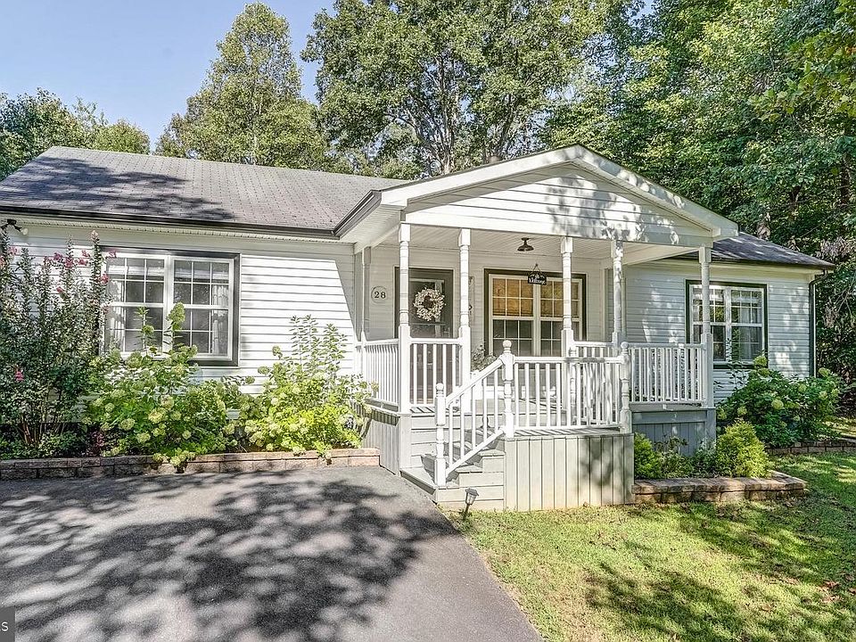 Straight from the pages of Southern Living Magazine, this newly renovated and enchanting country cottage will immediately elevate your lifestyle, and leave you smiling, ear-to-ear. Located in the idyllic Lake Monticello community, this adorable home recently enjoyed a complete head-to-toe makeover, including: new white quartz countertops, LVP flooring, new custom wood kitchen cabinets, stainless kitchen appliances, luxurious tile backsplash, renovated bathrooms, new lighting, incredible farm sink, wood-burning fireplace and mantle, new plumbing, and even more improvements! Outside renovations include beautiful new white siding, black window trim, a new HVAC, new plumbing/pipes, new screens, fencing, and more. All of these improvements are listed in the documents section. This cozy abode offers over 1,300 square feet, and is anchored around a large family room, featuring a lovely wood-burning fireplace and chunky statement rustic mantle above. The spacious primary suite includes a walk-in closet, designer wallpaper, ceiling fan, and en suite bathroom, vanity, tile flooring, and beautiful glass shower door with elegant black trim. Your guests will enjoy the spacious guest room and second full bathroom with shiplap and elegant countertops. The kitchen is open, spacious, and features custom wood cabinetry, a large peninsula with bar seating, recessed lighting, and smoothly connects to an open dining area with large storage closet/pantry showcasing rustic barn doors. This home also offers a separate laundry room off the kitchen with washer and dryer. Unwind outside in the extremely private, fairytale-like courtyard, complete with shaded seating beneath a lovely gazebo, constructed on a hardscape patio, a relaxing rock waterfall, hammock, lots of natural shade, large back deck attached to the home, and plenty of private shaded yard space. This property also offers are big detached two-car garage, as well as a convenient storage shed with storage shelving. In addition, you'll also enjoy all of the incredible amenities Lake Monticello has to offer, including a private lake, boating, fishing, 18-hole golf course, tennis courts, swimming pool, sandy beaches, a walking track, and much more.