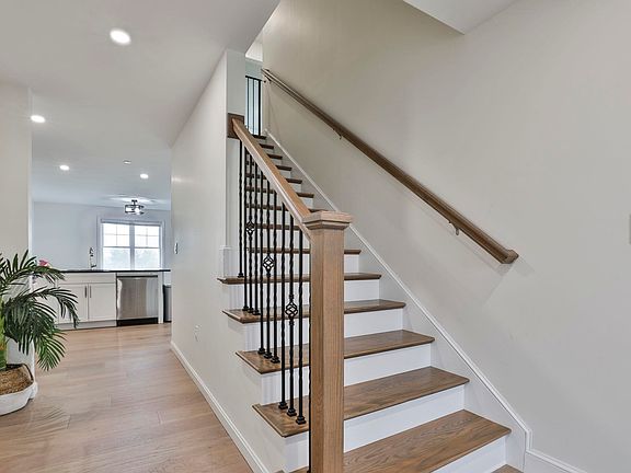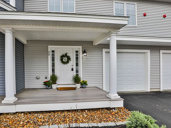 Discover the perfect blend of comfort, style, and convenience in this impeccably maintained 2-bedroom, 2.5-bath townhome with a spacious bonus room, nestled in the sought-after Ridgewood Commons community of Raymond. Lovingly cared for by a military family, this nearly-new home is available due to a PCS relocation—presenting a unique chance for the next owner to move right into modern, turnkey living. Step through the front door into an inviting open-concept main level flooded with natural light. The 8” Ivory white oak hardwood flooring adds warmth and elegance throughout the space, beautifully complementing the bright, contemporary kitchen. Here, you’ll find pristine 36” soft-close white cabinetry, and sleek granite countertops, perfect for casual dining or entertaining. The adjacent dining and living areas flow seamlessly, highlighted by a glass-fronted natural gas fireplace that serves as a cozy focal point. A sliding door opens onto a private rear deck overlooking serene wooded surroundings—ideal for morning coffee, quiet reading, or evening relaxation. Upstairs, the generous primary suite offers a tranquil retreat with a walk-in closet and a private ensuite bathroom featuring a dual-sink granite vanity. A second spacious bedroom, a full bath, and a versatile bonus room provide flexible options for a home office or growing family. Additionally, the walk-out basement with high ceilings that’s ready to be finished for added living space or used as exceptional storage space!
