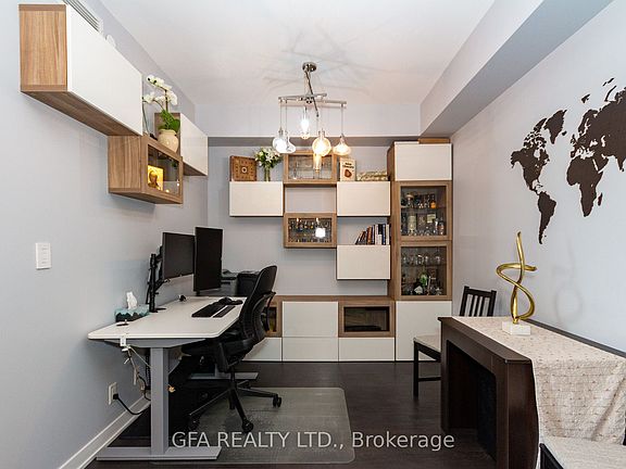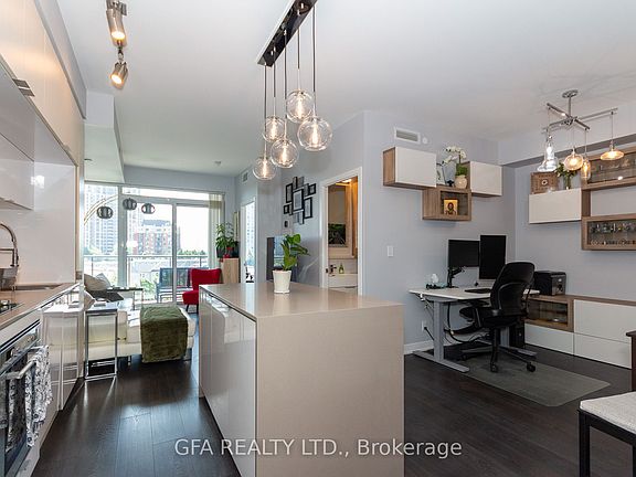 Large denUnobstructed south bright viewDesigner kitchenWaterfall islandIntegrated ss appliancesEuropean cabinetPlenty of storage space