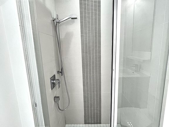 Floor to ceiling windowsOpen concept layoutModern designer kitchenQuartz counterBrand new cook topWasher and dryerCeiling and bathroom lights
