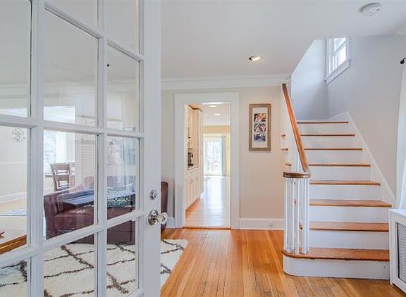 ABSOLUTELY CHARMING, MOVE-IN READY, 4 BEDROOM SIDE HALL COLONIAL WITH GREAT FLOW AND OPEN KITCHEN FAMILY ROOM AREA! AN ENTRY VESTIBULE WELCOMES YOU INTO THE FORMAL LIVING ROOM WITH GAS FP; FRENCH DOORS A SUNLIT SIDE-DEN; A 2ND ARCHWAY OPENS TO FORMAL DINING RM CREATING A FRONT-TO-BACK FLOW GREAT FOR ENTERTAINING! A DOORWAY BESIDE THE LIVING RM STAIRCASE LEADS TO BUTLER'S AREA, POWDER RM and INTO THE OPEN MODERN KITCHEN FAMILY RM AND BREAKFAST AREA, W SLIDERS TO RAISED REAR DECK. THE 2ND FLOOR MASTER BEDROOM and TWO ADDITIONAL BEDROOMS SHARE REMODELED HALL BATH WITH DOUBLE SINK VANITY and SHOWER OVER TUB. EXCEPTIONALLY SPACIOUS FOURTH BEDROOM and STORAGE ON 3RD FLOOR. FINISHED LOWER LEVEL REC ROOM, LAUNDRY AND UTILITIES. 2 CAR DETACHED GARAGE and LARGE LEVEL FENCED IN YARD.