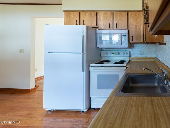 Don't miss out on this one! This charming ranch features 2 bedrooms and 2 full bathrooms. Beautiful gleaming oak flooring throughout makes this home feel bright and warm when the sun shines on them. Other features include laundry room on the first floor, roof replaced 2 years ago, full basement that can be used for extra storage, home gym, office space and more. Outside features a pressure treated deck with pergola. Great fenced in backyard space. 1 car garage with room in back for storage. Quiet neighborhood, convenient location. Close to shops, restaurants, and more. 5 minutes to Hudson Valley, 10 minutes to Downtown Troy. Book your personal showing today!