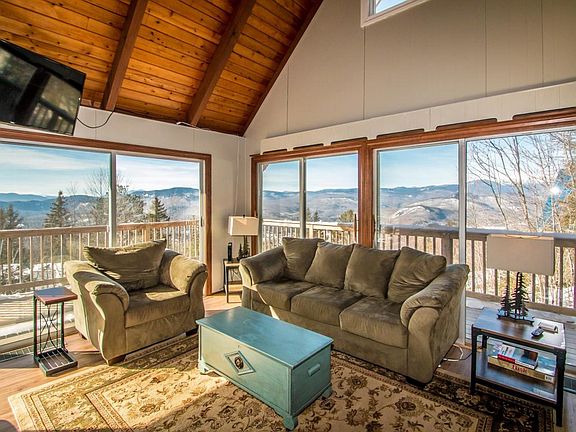 Perched above the quintessential town of Jackson, this 4 bedroom, 3 bath chalet boasts panoramic MT. WASHINGTON and Jackson Village VIEWS and a Four-Season Lifestyle. The tongue & groove pine cathedral ceiling & dramatic double-sided fireplace highlight the living room. Gather friends in the large eat-in kitchen to enjoy good food, wide views and a wood burning fireplace. There are bedrooms and baths on all three levels. Lower level: Family room highlighted with the second wood burning fireplace, a laundry & storage closet. Walk to nearby Tin Mountain Conservation Center Trails. Jackson is 74% National Forest, home to Jackson Ski Touring's superior cross country ski network, Black Mountain Ski Area, Wentworth Golf Course, Eagle Mountain G.C. It's just a short drive to Wildcat, Attitash and Cranmore mountains, Story Land. Jackson Village boasts wonderful eateries, the beautiful Jackson Library and Jackson Historical Society's museum of White Mountain Art. Nearby North Conway shopping, abundant restaurants and great White Mountain recreation are all here in the Mount Washington Valley and beyond. Roof re-shingled in 2019 and a new spacious deck in 2018. There is a rental in place from February 18th through March 13th. Property will be open for showings after this rental.