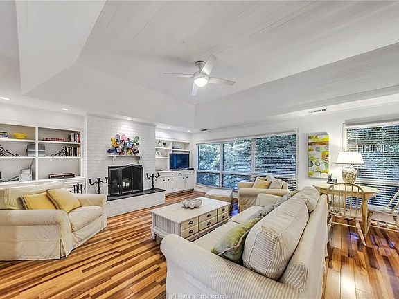 Expansive private courtyard area for entertaining along side your fabulous pool and spa add another whole outdoor living environment to this home. Hardwood floors throughout, screened porch, fireplace, 2 master suites, 2 - car garage, 3 BR/3 BA make this home a perfect island retreat, investment property or private year round residence. Walk/bike to beach. Located on a private cul de sac in Sea Pines Plantation.