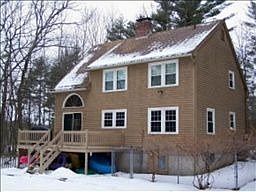 Listing agent: Chip Sutton, Call 603-845-2130 for information. Built in 1982 this handsome 3 bedroom, 2.5 bath Cape is nestled back off the road on a private, wooded 1.29 acre lot. Just down the street from the historic Robert Frost Farm, this Cape style home has stained clapboard siding and a full rear dormer. Coming down the paved driveway you will appreciate the peaceful setting, nice landscaping and brick walkway with landscape lighting. You'll note the newer roof with architectural shingles and the two car under garage. Entering the front door you step onto the hardwood floor in the spacious open concept living room/dining room/ kitchen built around the huge brick hearth with handsome wood stove. You'll notice the hardwood flooring is throughout the first level. The living room(12x20)is to your right and then opens to the exquisite dining room(10x11)toward the rear with vaulted ceiling up toward the master bedroom above. The rear wall has a handsome atrium door to the large deck with large paladian window above it. The large kitchen(12x22) is to the side with attractive new ceramic tile counter and breakfast bar. The kitchen boasts a double stainless steel sink, oak cabinets, new ceiling fan/light, electric flat top range/oven, built in microwave, dishwasher and refrigerator. Note the vinyl replacement windows all around, just 2 years old and real energy savers. A little further down the hall is the den(10x11)with hardwood floor. This room could be a great little office or study. There is also a convenient half bath and laundry with vinyl floor, sink & vanity and washer/dryer hookups. A good size coat closet is in the foyer area as well. Going up the Berber carpeted turn stairway you come to the second floor with two bedrooms(both about 10x11)with wall to wall carpet, new ceiling fan/lights and ample closets. The full bath has ceramic tile floor, oak vanity and fiberglass tub/shower. Down the hall is the master bedroom(13x16)with wall to wall carpet, new ceilin