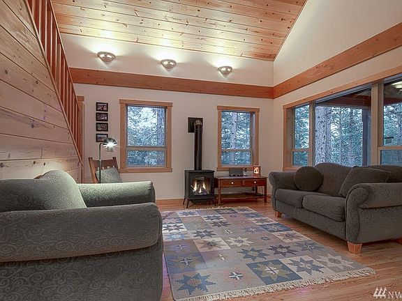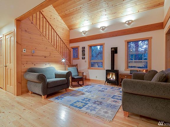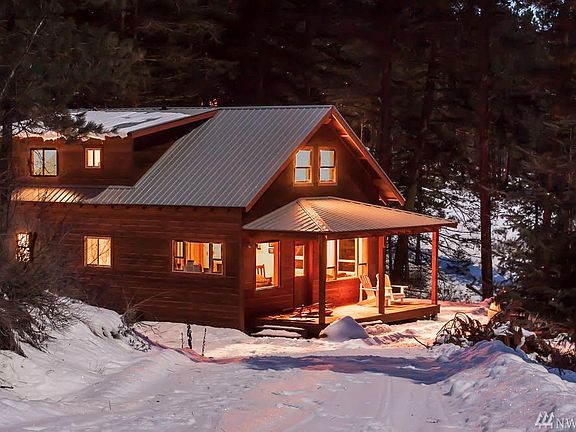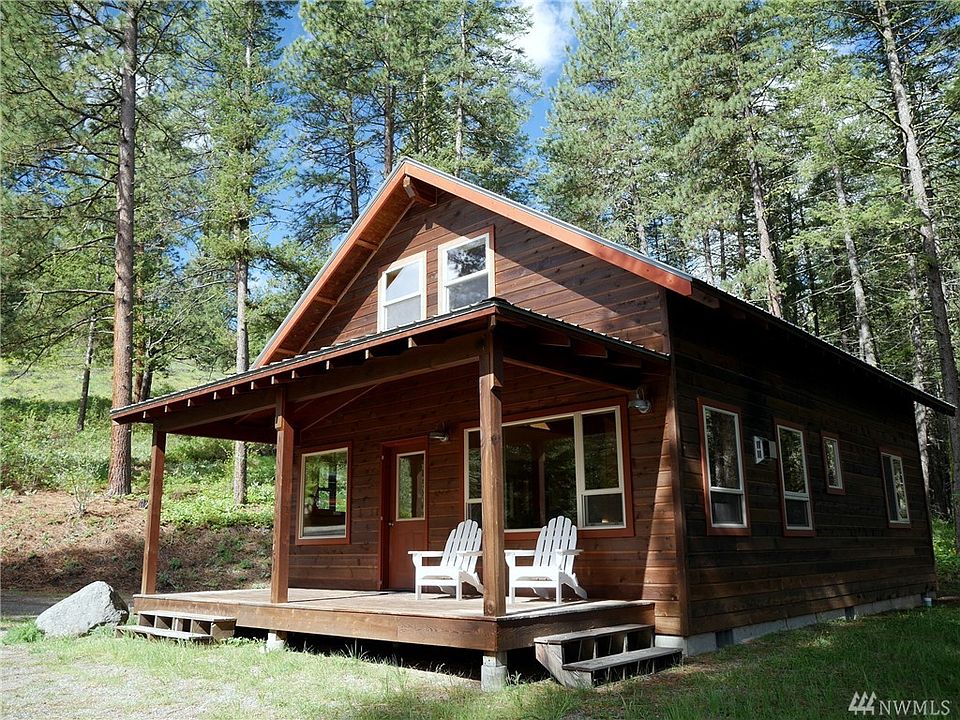Mountain Hideaway. Relax on the covered front porch. Listen to seasonal Thompson Creek flow by & wind whistle through the big pines. Well maintained newer cabin w easy flow floor plan. Propane stove adds cozy cabin ambiance! Bright interior w light wood floors & cabinets. 2 bdrms & 2 baths plus loft for extra guests, projects or media space. Extras include laundry rm, covered back porch, built in dressers & shelves, wrought iron bathroom fixtures. Easy access to trail system & Patterson Lake!