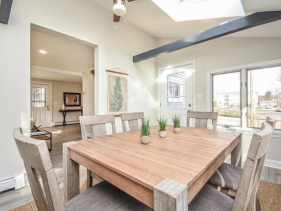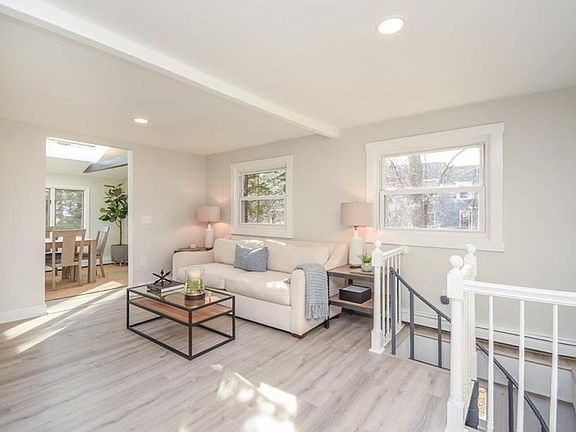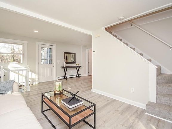 Available 4/1 Recently renovated 1282 sq. ft condo with 2 bedrooms, 1 bath with 3 living levels on a quiet side street. 1st floor consists of a 4 season sunroom w/ vaulted ceiling & skylights, open concept living/dining room, renovated full bath & kitchen w/stainless steel appliances, granite countertops and cabinets. The large finished basement can be a media room, exercise room or home office, and has a separate entrance. Basement also has a storage room w/in unit laundry (washer/dryer incl). A huge common fenced yard is available for use. There are 3 private entrances & 2 off street parking spaces. Condo is 5 mins walk to Wilmington commuter rail with quick access to the highway & Main St amenities. Rent includes water/sewer Tenant responsible for heat(gas), electricity and snow removal. Last month's rent and security deposit required. ($2400 + $1500). No pets allowed. Non-smokers only please. *Condo is unfurnished. Furniture for staging purposes only. Please provide the following information when responding: 1.) Your first and last name, email address and phone number 2.) Total number of people that would occupy the apartment 3.) Monthly pre-tax income for household 4.) Date you wish to move in