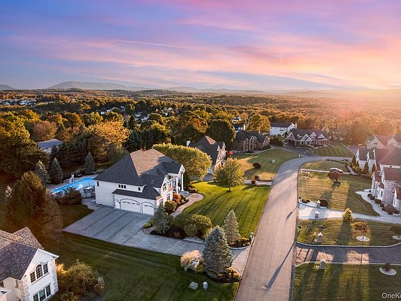 French Country-style Luxury meets Resort-Style living in the Hudson Valley's most desirable enclaves, Carmel Heights. Discover a breathtaking custom-built home set on a pristine, level and landscaped lot with a Birds Eye view for days! An architectural masterpiece that defines elegance, craftsmanship and captures the essence of refined living with its timeless brick and stucco exterior, towering columns, and meticulous curb appeal. From the moment you arrive, you’ll be captivated by the stately brick, grand double-door entry, and lush landscaping leading to an inviting paver-built driveway. Step inside to find soaring ceilings, expansive sun-filled windows, and meticulous craftsmanship throughout more than 4600 sq. ft. of living space. The elegant staircase and custom architectural details throughout make this home absolutely breathtaking and is designed to impress and inspire. The main level features formal living and dining rooms, a gourmet chef’s kitchen is the heart of the home featuring high-end appliances, custom cabinetry and an oversized island connecting to the spacious family room making it ideal for gatherings. Each additional bedroom is generously sized with ample closet space and refined finishes. Additional home features two stunning Princess Suites, each designed for comfort and style. The main-level Princess Suite offers a private full handicapped-accessible bathroom, ideal for guests or multi-generational living. Upstairs, the second Princess Suite boasts a dual walk-in California closet, full ensuite bathroom with a relaxing Jacuzzi tub, creating a true spa retreat. Two additional bedrooms share a beautifully appointed Jack & Jill full bathroom, also featuring a Jacuzzi, perfect for family or guests. Every suite offers ample closet space, well-designed finishes, and thoughtful design for today’s modern lifestyle. Outside, discover your own private resort. The backyard oasis is a showstopper with a heated in-ground pool featuring a slide and diving board, sprawling paver patio, a charming gazebo & lush greenery for ultimate privacy. This home also offers an oversized three-car garage with expansive driveway, full unfinished basement with 10 ft. ceilings ideal for rec/room, bar area, theater and home gym. Rouged in plumbing for future bathroom & kitchen, amazing mother/daughter potential. Additional notable upgrades are Hydro air for heating, newer water heater, whole house Generator, 400 amps of electric, three radiant heating zones in kitchen, dining room, & primary bathroom upstairs & a 19 zone in ground irrigation system. Brand new 50 yr roof with transferable warranty. Amazing location, minutes to Route 9, villages of Wappingers and Fishkill, culinary grade restaurants, local shops, schools and I-84. Municipal water, sewer and natural gas. Come see all that the Hudson Valley has to offer!