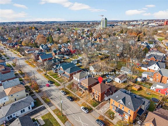Welcome to Brantford’s Eagle Place neighbourhood - an established community known for its historic charm, revitalizing energy and welcoming, family-oriented spirit. Set along mature, walkable streets with easy access to downtown and transit nearby, this home blends timeless details with everyday convenience. Inside the trim and woodwork showcase the craftsmanship of a bygone era, complemented by soaring 10 ft ceilings in the front entrance, living room, dining room and main floor bedroom - creating a bright, open, and inviting feel throughout. With a total of four comfortable bedrooms, a 4 pc bath upstairs, and a 3 pc bath with laundry connections on the main level, the layout offers flexibility for families of all kinds. Recent updates, including new carpets and fresh paint, refreshed, and ready for you to call home. Outside, you’ll find parking for 3 vehicles at the rear plus 1 in front, along with an extra large detached insulated garage with hydro—perfect for a workshop, storage and secure parking. A shared driveway leads you home to a place filled with history, comfort and possibility. All just minutes from major amenities and only 7 minutes to Hwy 403. Enjoy immediate possession - move in right away and make this house your home! Note: some photos have been virtually staged.