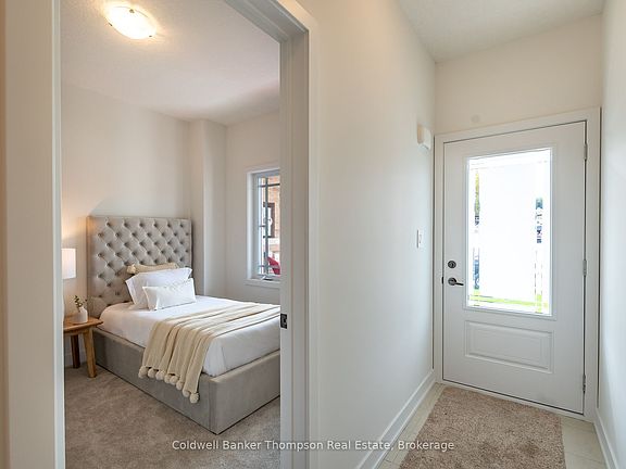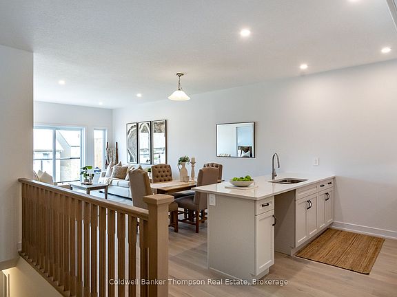 Welcome to the sought-after Woodstream community, where Devonleigh Homes presents a new bungalow townhouse that perfectly blends comfort, style, and convenience, with no condo fees to worry about. Wrapped in a neutral exterior palette with a welcoming covered porch entry, this home offers immediate occupancy and a thoughtfully designed layout. Inside, the main floor opens to a bright and airy open-concept living, kitchen, and dining area, creating the perfect space for everyday living or entertaining. At the rear of the home, the primary suite provides a peaceful retreat with a 3-piece ensuite, while a second bedroom at the front of the home and a 4-piece guest bathroom accommodate family or visitors with ease. Enjoy the practicality of inside entry from the single car garage and a separate main-floor laundry room for added convenience.The living rooms sliding doors lead to a beautifully constructed deck with glass railings, ideal for relaxing or taking in the view. The lower level, with its unfinished walkout and 3-piece rough-in for a bathroom, offers endless possibilities for future living space. Thoughtfully upgraded throughout, this home includes builder-selected finishes such as a 60" ensuite shower with upgraded faucet system, stylish interior door hardware, flatstock trim, an enhanced kitchen layout with taller cabinetry, under-cabinet valence and lighting, elegant quartz countertops with tile backsplash, and upgraded cabinetry in both bathrooms. Hardwood flooring flows through the living and dining areas, complemented by upgraded railings and stain, and well-placed potlights for a polished, modern feel. With all these details already included in the price, this home offers a rare opportunity to move right in and enjoy a brand-new Devonleigh build tailored for today's lifestyle.
