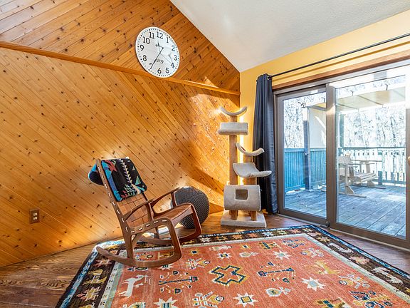 Step into this sun-filled, 3-bedroom contemporary home where an open-floor plan and vaulted ceilings create a bright, welcoming atmosphere from the moment you enter. Large windows invite natural light to pour in, giving every room a cheerful, airy feel. The kitchen features stainless steel appliances next to a charming dining room with hardwood floors and sliders that lead to a spacious deck-perfect for relaxing or entertaining while enjoying views of the private backyard. This well-loved home has been meticulously maintained by its original owner and includes central air conditioning, oil heat, and an efficient heat pump hot water heater for added comfort and savings. Nestled on a quiet cul-de-sac with access to the Air Line Trail nearby, this home offers the ideal blend of privacy, comfort, and outdoor enjoyment. A truly inviting property you won't want to miss!