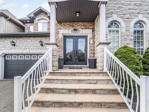 Immaculate Detached in Exclusive Neighborhood ((3,212 Sqft as per Mpac)) ((4 Bdrm + 3 Full W/R on 2nd Level)) Separate Side Entrance by Builder// Unspoiled Basement// Double Door Entry// Hardwood on Main Floor// Laminate on 2nd Level// Lots of Natural Light + Luxury Glass Wall at stairs side wall for Extra Natural Light// Pot Lights + Crown Molding throughout Main Floor// Den combined Bright & Spacious Living Room & Dining Room w/ Decorative Columns// Large Family Room w/ Gas Fireplace// Large Eat-in Kitchen w/ Granite Counter Top + Centre Island + Stainless Steel Appliances + W/O To Yard from Kitchen// Oak Stairs// Huge Master Bdrm w/ Double Door Entry +5 Pcs En-suite + W/I Closet// All Good Size Bedroom// Access to Garage// Main Floor Laundry// Fully Fenced Backyard w/ Stamped concrete + Cedar Trees for full privacy//Stone at Front and One side of House// Close To Hwy 401& 407, Schools, Toronto Premium Outlet, Grocery, Banks and all other amenities//