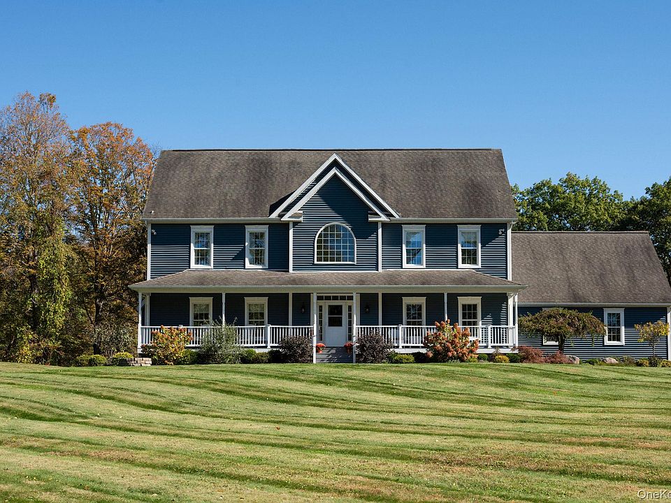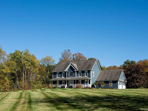 Set on 6.75 private acres just minutes from Tivoli, Red Hook, and Rhinebeck, this 2,900-square-foot residence blends refined comfort with the natural beauty of the Hudson Valley. Offering four bedrooms and three baths, the home captures a rare sense of privacy and connection to the landscape — all within moments of charming villages, acclaimed dining, and Bard College. From every window, nature provides the art — rolling lawns, a serene pond visited by herons, and, in winter, sweeping views of the Catskills. The front facade boasts mature landscaping and a full length front porch. Enter into a double height foyer with hickory hardwood floors, a living room to the left- which has a gas fireplace- and a hall leading to an open kitchen with a large island, granite countertops, a workspace and a dining area. There is a formal dining room, a cozy TV room, laundry and half bath on the main floor. Upstairs find 4 bedrooms, including the primary with ensuite bath, with radiant heating, and an additional full bath. The basement is partially finished and also has a full bath. There is a large, attached oversized 2 car garage with radiant floor heat and plenty of space for storage and recreational vehicles. Outside the front grounds offer ample space for play and pets- there is an invisible dog fence around the entire perimeter of the property, while the backyard terrace was made for gatherings — an ideal setting for summer dinners, fireside conversations, or simply watching the light move across the pond.
