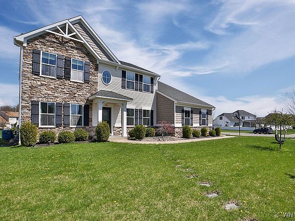 **BRAND NEW FENCE INSTALLED 9-10-2025** Welcome to this beautiful, spacious home located in the heart of West Seneca with the added bonus of being in the highly sought-after Orchard Park School District. Boasting over 3,000 square feet of meticulously maintained living space—plus an additional 1,000 square feet in the finished basement—this home offers the perfect blend of comfort, luxury, and flexibility for today’s lifestyle. Step inside to discover gleaming hardwood floors throughout and soaring 9-foot ceilings with 8-foot doors that create an airy, open feel. The expansive kitchen is a true showstopper, featuring granite countertops, hardwood floors, and a generous layout that opens to a bright morning room with vaulted ceilings—perfect for casual dining or relaxing with your morning coffee. This corner-lot gem boasts exceptional curb appeal with elegant stone and vinyl siding, making a beautiful first impression. The open-concept layout includes a large formal dining room, an additional living space, and a versatile first-floor study that can easily be converted into a fifth bedroom. Plans are available to transform a nearby bathroom and create a luxurious first-floor master suite—ideal for multi-generational living or added convenience. Upstairs, you’ll find four spacious bedrooms and two well-appointed bathrooms along with a large second floor laundry that makes life SO easy. The finished basement includes a half bath and plenty of room for entertaining or relaxing, with space already in place to easily add a shower or tub. There are TWO egress windows for easy access and lots of natural light! This home truly has it all—space, elegance, and thoughtful design in a fantastic location.