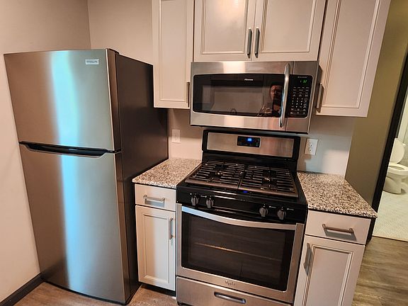 Discover your new home in this cozy 2-bedroom, 1-bath apartment, ideally suited for comfortable living! The unit comes fully equipped with modern amenities, including a fridge, oven, and microwave for all your cooking needs. Coin washing machine and dryer in basement . Priced at $1,1100/month with a $1,100 deposit, $50 key deposit, this gem won't last long! Water and garbage paid by landlord. Gas and electric paid by tenant. Available parking + off street parking . No pets . No smoking.1 year lease
