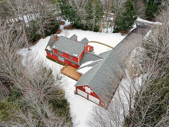 This quintessential Cape style home was constructed for the Builder himself! Renowned craftsman and Builder of many decades, RL Coombs- this home is the embodiment of a ''well built home''. Squirreled away on a private, dead end road, 3 acres, surrounded by trees and abundant with wildlife- this truly is a bastion of peace and serenity! The efficiency in design is one of the many alluring features of the home- 1st floor Primary bedroom with ensuite bathroom as well as 1st floor laundry located in the mudroom. The kitchen is loaded with cabinetry, center island for additional storage and seating, adorned with a classic bit of country charm- the robust cast iron wood burning cook stove easily heats the home and provides a rustic element to your culinary pursuits! The dining room is open to the kitchen separated by a delightful archway and full of natural light! The living room features a wood burning fireplace to set a warm and inviting tone, perfect for gatherings and moments of relaxation! Tucked away in the center of the home is an office/ bonus room. 3 sizable bedrooms, full bathroom an office and additional bonus room are located on the 2nd floor. Fully dormered this level does not feel tight or cloistered. An expansive 28'x48' garage steals the spotlight, offering a workshop area, four garage doors/ vehicle storage and stairs leading up to a potential ADU, additional living space—unleashing endless possibilities for customization. This residence effortlessly fuses practicality with comfortable living, presenting a rare gem in the sought-after Topsham neighborhood!