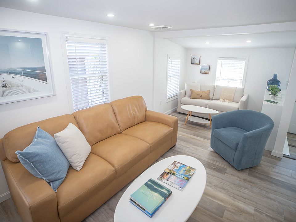 Our home is one of the original Easton's Point cottages recently renovated with modern comfort in mind. Perfect for one couple, a small family, or a few friends. It features a charming galley kitchen, open-concept living and dining area, two bedrooms, and a spacious full bathroom with a walk-in shower.