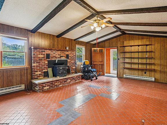 Cozy fireplaceLarge kitchenLarge yardOut buildingThree-car garageLush tree-shaded lotWhite vinyl siding