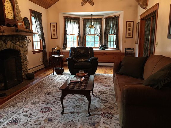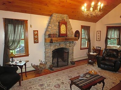 Very nice Arts and Crafts style Cape with large addition! This well maintained home sits on .92 acre level lot that abuts conservation land and seconds from Southwick pond. As you enter the home you'll appreciate the period woodwork, coffered ceiling living room, chair rail, built in cabinet in dining room and hardwood flooring throughout. A very open and large custom kitchen with beaded board cabinets, birds eye maple counters , center Island, and full bath. 2nd floor offers 3 bedrooms and 1 full bath as well as access to walk up attic. The addition includes an extra large family room with Rumford fireplace surrounded by River rock, vaulted ceiling with loft and french doors that lead to covered mahogany deck with hot tub. An absolute must see.