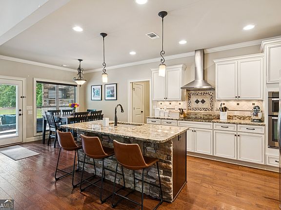 CUSTOM PEBBLE TECH POOL w/ SLIDE! AMAZING COVERED OUTDOOR LIVING SPACES! LEVEL LOT! MASTER ON MAIN! OPEN FLOOR PLAN! TWO CAR GARAGE w/SPACE FOR GOLF CART OR ATV! THIS HOME HAS EVERYTHING YOU'VE BEEN LOOKING FOR! Stunning 5BR/3.5BA Home with in the desirable Dawson Forest Manor just minutes from great schools, shopping, restaurants, and award-winning hospitals! PRICED BELOW MARKET VALUE! Welcome to this beautifully maintained 5-bedroom, 3.5-bathroom home nestled on a private, manicured and level, .6338-acre lot in the sought-after Dawson Forest Manor community. This home is truly an entertainer's dream, offering exceptional indoor and outdoor living spaces and high-end finishes throughout. Step outside to your custom-designed PebbleTec pool, complete with a sundeck, umbrella hole, slide, stone waterfall, and ambient lighting-perfect for enjoying warm summer days and evenings. The outdoor living area includes a covered stone fireplace, spacious stone patio and seating area, plus an open-air patio ideal for grilling and gatherings. You are going to love this home's floor plan featuring a large living room with coffered ceilings, built in bookshelves, stacked stone fireplace, and open concept dining area and breakfast nook. The gourmet kitchen is open to the living room with a large island, stainless steel appliances, and a range/hood-ideal for cooking and entertaining. The spacious primary suite is located on the main level with a large master bathroom, double head shower/ double vanity, and large walk-in closet. Two additional bedrooms and full bath are also on the main floor! Upstairs you'll find two secondary bedrooms and a full bath-perfect for guests, an office, or a playroom. The oversized garage easily accommodates two large vehicles plus a golf cart, with additional space for a workshop, tools, or storage. Conveniently located just minutes from Highway 400, top-rated schools, shopping, dining, parks, and hospitals-this home has it all. Don't miss the opportunity to make this incredible property your own and enjoy the rest of summer in your private backyard oasis! *Home is accessible with zero entry from the front and back entrance w/ double door entrance.