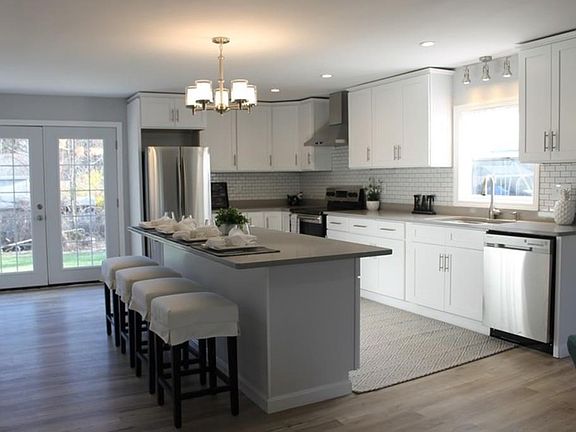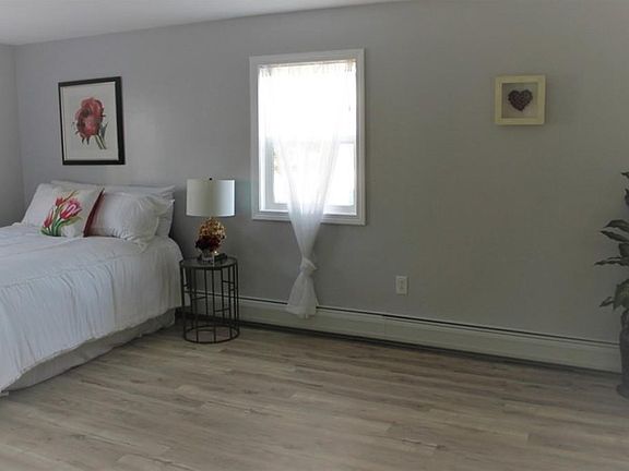 Spacious 3 bedroom ranch with an open concept layout that's perfect for entertaining! Completely remodeled modern eat-in kitchen with white shaker style cabinets, Quartz countertops, stainless steel appliances, and French doors which lead to a beautiful backyard with a large shed. This home offers a master bedroom with en-suite bathroom and 2 additional bedrooms with walk in closets. New lighting, flooring, heating system, hot water boiler, furnace, and oil tank. Laundry room can be used for extra storage and no need to worry about basements because this property does not have one! Please note that the seller has never occupied the property and that the property is being sold AS IS. The hot tub is not included as part of the sale.