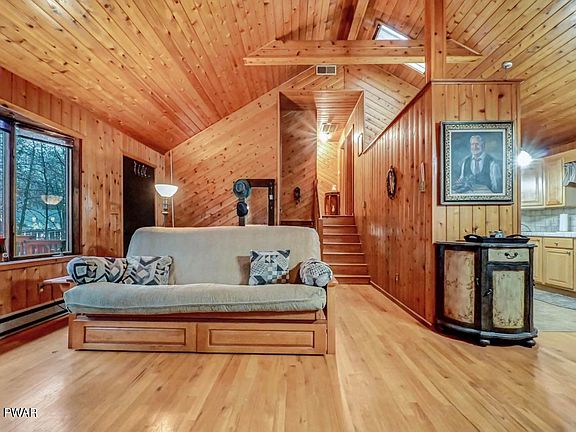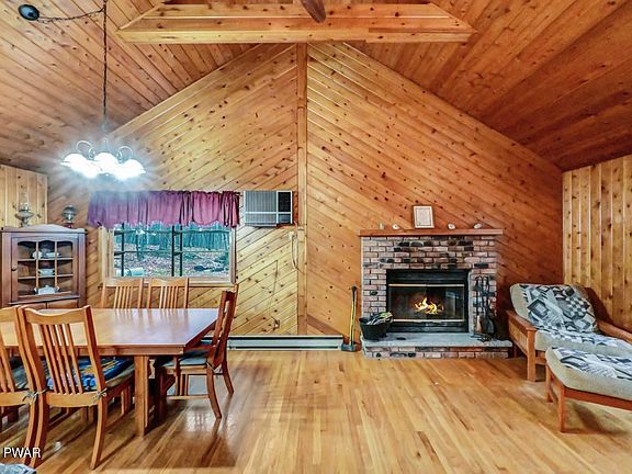 RUSTIC ROMANTIC STYLE FOR COMFY-COZY LIVING! awaits in this 3 bedroom 2 bath Hideout retreat. Whether it's a weekend escape or a full time residence you're searching for, this is a must see. With tongue and groove surrounding the kitchen, dining and great room, complete with vaulted ceilings, you will be ready to snuggle up for a long winter's nap in front of the wood burning fireplace. this great space. This truly unique home is nicely set back on a wooded lot just a short distance from nearby Deerfield Lake. Feel that Lake Living vibe and recognize the home's good bones as soon as you step inside. The top level of the home is sleeping quarters with three bedrooms and a full bath. Another couple steps to the lower level and you will find a spacious den with bar area along with another full bath and laundry. Storage abounds within the unfinished basement area not to mention the detached outdoor shed in back. There's also a deck in the front, a screened in heated porch to the rear, plus a 598 square foot covered carport. The Hideout is a gold star gated community with something for everyone; whether it's boating, fishing, skiing, golfing, dining in community or just lounging around the heated pool. Home price also includes a permanent generator.