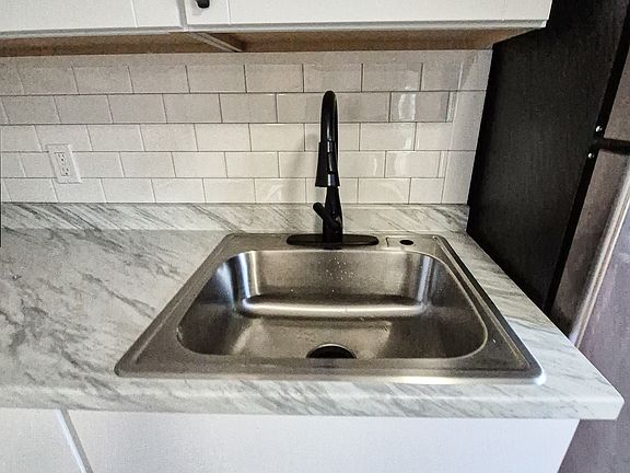 At the end of the hallway, the home opens into a spacious eat-in kitchen, which has been completely renovated. The kitchen features new shaker-style cabinetry, L-shaped quartz-style countertops, a deep stainless steel single-basin sink with matte black pull-down faucet, brand-new appliances (you will be the first to use them), and a subway tile backsplash for a clean, timeless finish. A bay-style window adds natural brightness and provides a comfortable space for a small dining table or morning coffee setup.