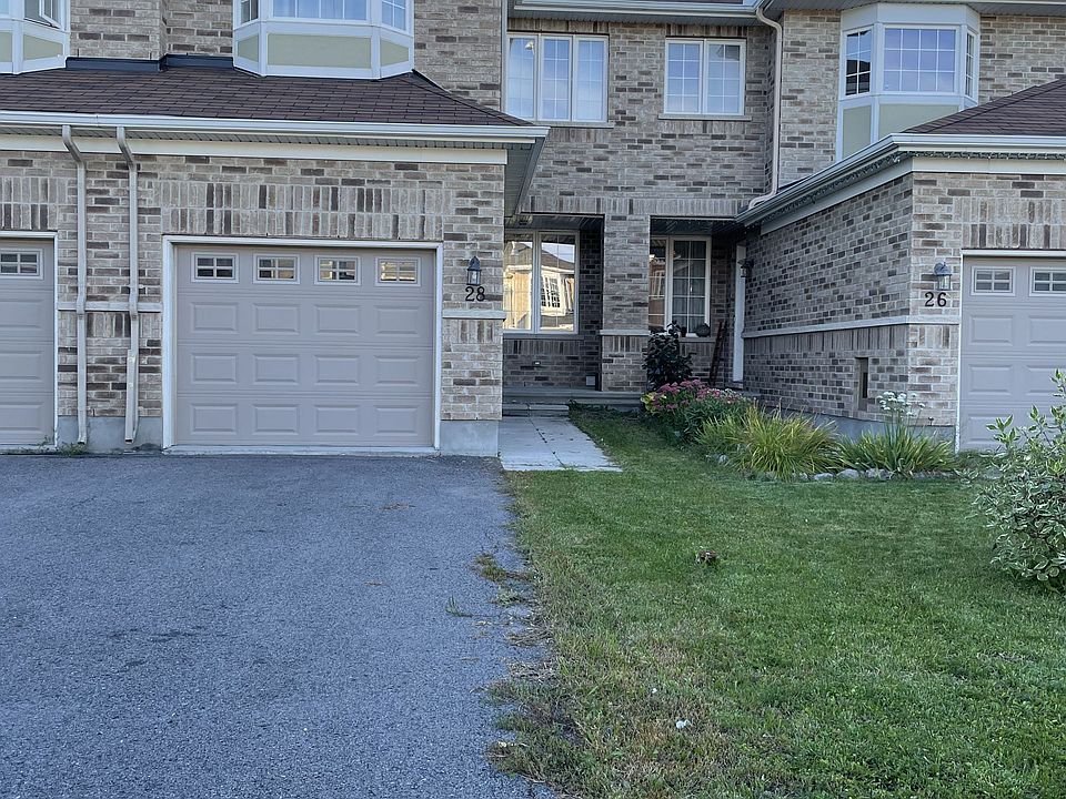 Welcome to 28 Desmond Trudeau Drive, a bright and spacious 4-bedroom townhome located in the desirable and family-friendly community of Arnprior, a minute away from Highway 417. This spacious townhome features 4 bedrooms and 2.5 bathrooms, perfect for families or young professionals. The main level consists of a large living space, a breakfast area, a dining area, a powder room, and a kitchen, which is equipped with stainless steel appliances, ample cabinetry, and generous counter space. Large windows, hardwood floors, and a fireplace make the living room bright and inviting. On the second level, you'll find four good-sized bedrooms and two full bathrooms. The primary bedroom boasts a walk-in closet and a private 3-piece ensuite for added comfort. The lower level has a large unfinished basement with a utility, a washer-dryer, and a storage area. A long driveway fits two cars along with an attached single-car garage. Tenant pays utilities: heat, hydro, water, water heater rental, internet, etc. The tenant is to provide a rental application, IDs, a letter of employment, pay stubs, and a credit report.