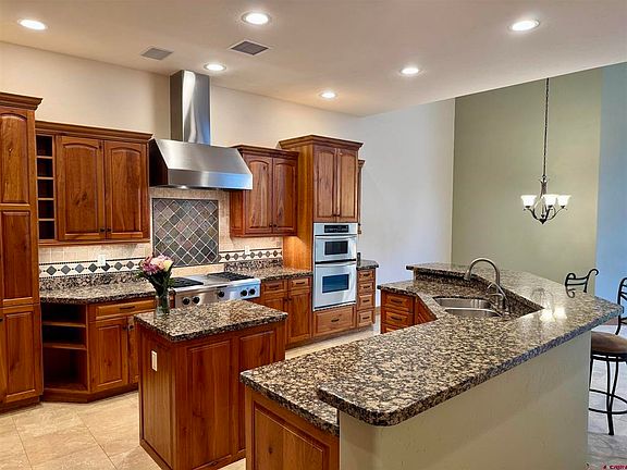 Welcome to effortless living in the picturesque Animas Valley! The Cottonwoods community offers the epitome of turnkey comfort, with all exterior maintenance handled year-round by the HOA. This stunning, meticulously maintained home has been thoughtfully updated with new flooring, a two-stage water filtration system, reverse osmosis water at the kitchen sink, a new refrigerator, a newer air conditioning system, and other upgrades that ensure move-in readiness. Step inside this inviting single-level residence to find radiant heated travertine floors and solid alder doors that add a touch of elegance. The beautifully appointed chef’s kitchen features spacious solid slab granite countertops, tall alder cabinetry with under-cabinet lighting, and top-of-the-line stainless appliances from KitchenAid and Bosch—perfect for preparing gourmet meals or casual gatherings. The open floor plan seamlessly connects the kitchen to the living and dining areas, providing an ideal space for entertaining. A gas fireplace, wet bar with wine fridge, and a covered patio invite relaxation and indoor-outdoor enjoyment. The primary suite and second bedroom are thoughtfully positioned on opposite sides of the home, ensuring privacy. The primary bathroom boasts ample granite countertop space, double vanities, tall cabinets for storage, a large soaking tub, and a steam shower—creating a luxurious retreat. An on-demand hot water system complements the home’s features, providing comfort and efficiency. The attached two-car garage offers plenty of storage for vehicles and gear. Located just 10 miles north of Durango in the desirable Hermosa area, this home is close to Dalton Ranch Golf Club, Purgatory Ski Resort, the San Juan National Forest, Durango Hot Springs, and shopping on Trimble Lane—making recreation and convenience easily accessible. Come explore The Cottonwood an inviting community with miles of sidewalks, stunning sunsets, and a peaceful lifestyle waiting for you!